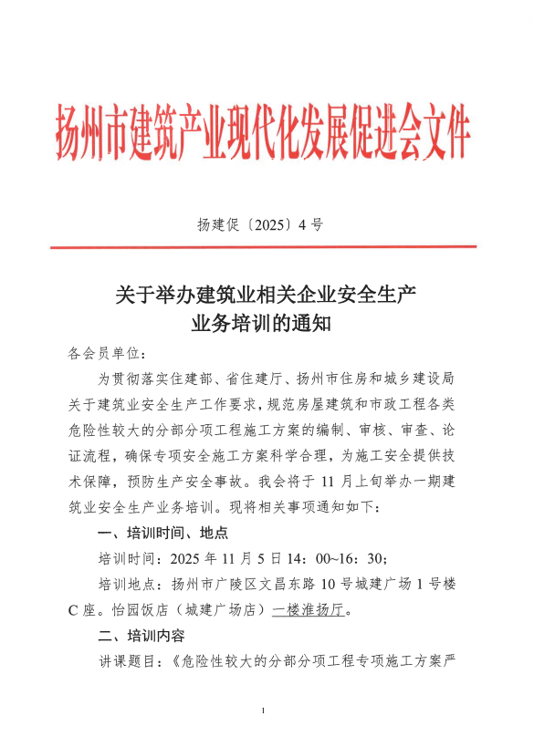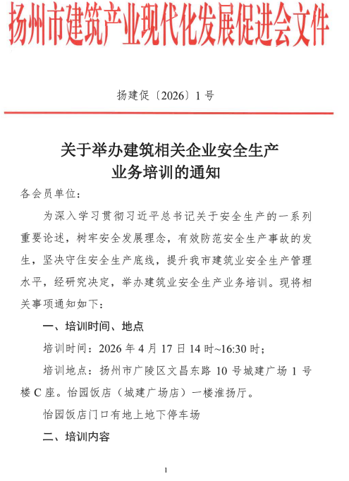 关于举办建筑业相关企业安全生产业务培训的通知